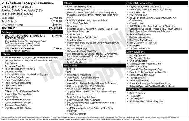 Media for 2017 Subaru Legacy at Valley Imports